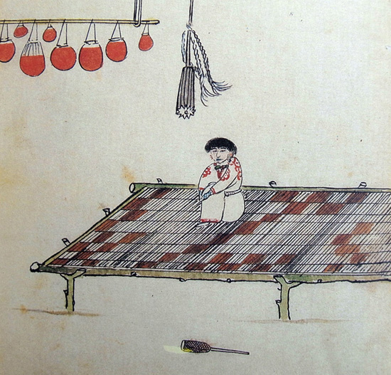 又おなじさませし短き槌搥(ツチ)に、木糸巾の布を、ひた巻にまきたるが榻床の下に投棄たるは、わかきアヰノらがつねのいとまあれば、槌搥(ツチウチ)のわざをならはせるの具となん。