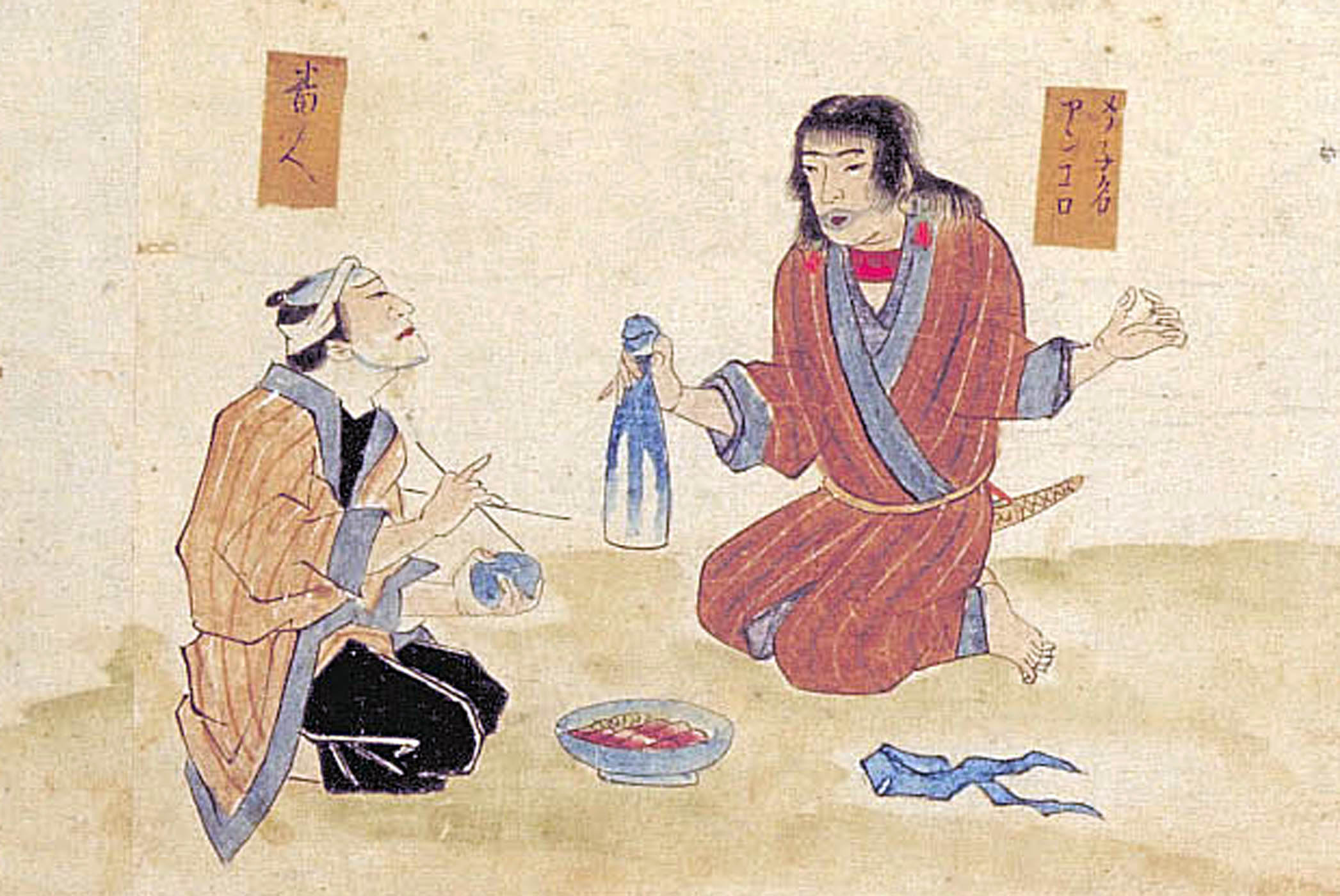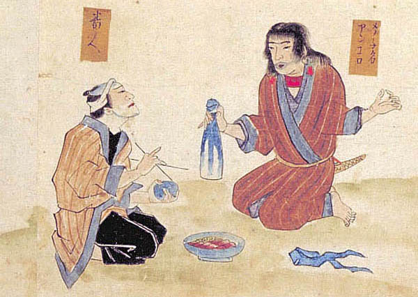 若番人等にても、女夷の陰所を見たりといへば、其アイノ番人に、かくすべき事をいひふらして我等に恥を與へたりとて、償をとる事と也。