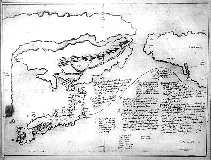 十六世記の半ば頃我が国に入った耶蘇会士は、間もなく日本の北に位置する蝦夷島のことを聞き、そこに住み、日輸を拝し火葬をしない異民族蝦夷に興味を持ち、元和三年(1617) にはその一人ジェロラモ=デ=アンジェリスがこの地に渡って、詳細な報告書と共に、地図さえ残しているが、それはアジア海岸からアメリカ海岸にまたがる巨大な国としてであった。
