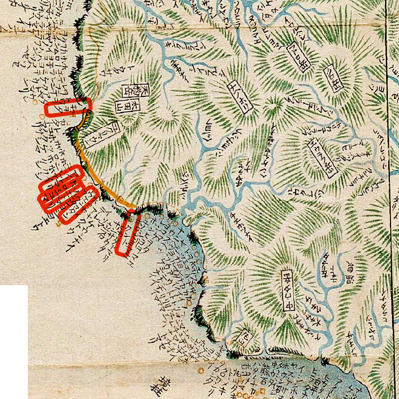 小宇多、阿登呂志をへて久度布(久遠)になりて、運上家のぬし厚谷、下国などいふ人々とかたらひて宿る。
