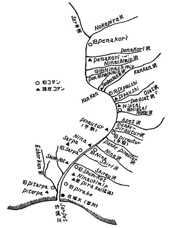 遠祖の発祥地は不明であるが、旧 Ninachimip (二風谷より川上、ペナコリ部落の少し下手) か Kankan へ、更に現在棲んでいる Osat 沢の向いに移って来たといわれる。