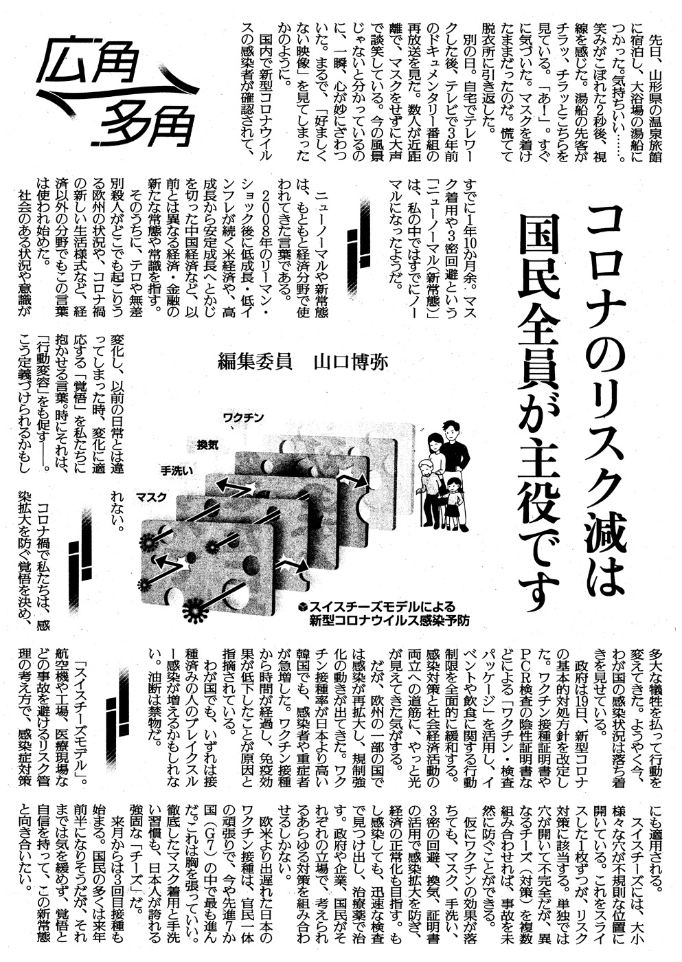 「感染拡大はワクチン未接種者のせい」(2021-11-24) で予言したように,「新型コロナ」は「非国民」排斥のステージに入っていく。 「馬鹿な戦争」を煽ってきたメディアは,戦況が思わしくなくなると,「非国民」への責任転嫁を図ることに躍起になっていく。 「国民なら当然こうする──こうしないのは非国民だ」の意味で, 「国民」のことばを連発するようになる。 マスコミの「国民」キャンペーンの内容は,「国民」デマゴギーである。 実際,「ワクチン・換気・手洗い・マスク」は,デマゴギーである。 ワクチン・換気・手洗い・マスクは,すべて新型コロナウイルスに対しては意味が無い。 苦しくなって「スイスチーズ」なんてレトリックを持ち出して来たが,笑止千万,噴飯ものである。 新型コロナウイルスを人から隔てられるものは,存在しない。 ウイルスは,「これと付き合う」と達観するものである。 マスコミはこれから「国民」を連発してくる。 ひとがこれに乗せられるとき,行為することは「非国民」狩り・「非国民」排斥である。 実際,ひとは「ワクチン接種証明書」を「国民パスポート」に見立てるようになっている。 行政はこの見立てを追認し,「ワクチン接種証明書」は「国民証明書」になる。 「ワクチン接種」を御旗に掲げる「非国民」排斥が,既に進行中なのである。 ひとは同じことを繰り返す──学習しない。 新型コロナに恐怖する者は,先ず感染者差別をする者になった: