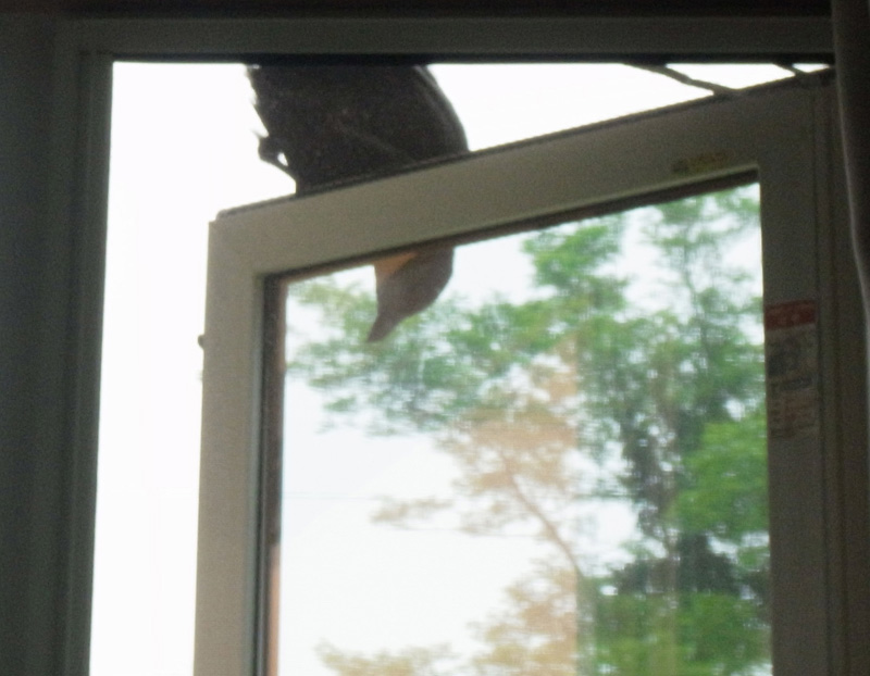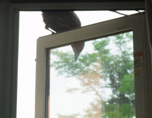 ♀ : 窓枠にとまって食べ物をねだる