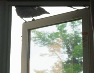 ♀ : 窓枠にとまって食べ物をねだる