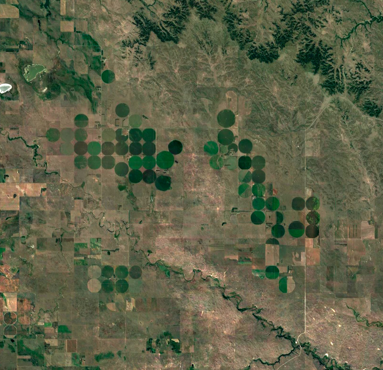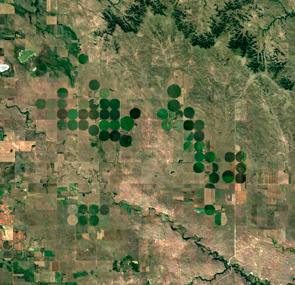 水は,地下から汲み上げる。 乾燥地帯なのだが,西のロッキー山脈の雪解け水が,長い時間をかけてこの一帯の地下水をつくっている。 その地下水は,無尽ではない。 取水井戸は,水が取れなくなったら,さらに深くする。 この場合,500m くらいが限度になる。 そうなったら,その耕地は放棄することになる。 そして,別の耕地の開拓に向かうというわけである。 乾燥気候の日照は,裸の耕作放棄地を乾燥させる。 そこは植物の生えないところになる。 こうして,そこ一帯はサバク化する。 アメリカ西部で農業をするとは,乾燥裸地のサバクをつぎつぎとつくっていくことなのである。 サバクは,たまたま雨が降っても,恵みの雨とはならない。 地中に浸み入った水は,蒸発する。 このとき,地中の塩類を上方に吸い上げる。 そこは塩類が濃くなっていく。 そしてこうなると,水を引いてきても植物は育たない。 なぜか。 植物が水を吸うのは,細胞液が細胞の外の水より濃い (溶質濃度が高い) ためである。 水は溶質濃度の低い方から高い方へ移動する。 この物理のため,濃い塩水に曝された植物は,細胞の内から外に水が移動する。 こうして死んでしまうのである。 カリフォルニア州デスバレーの塩平原は,このタイプのサバク化の極みを示している。 ![]() |