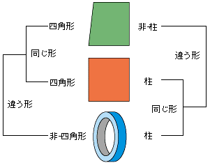 両立する見方の間では,「形が同じ」は「見方のどの含意どうしを比べるか」に依存することになります。