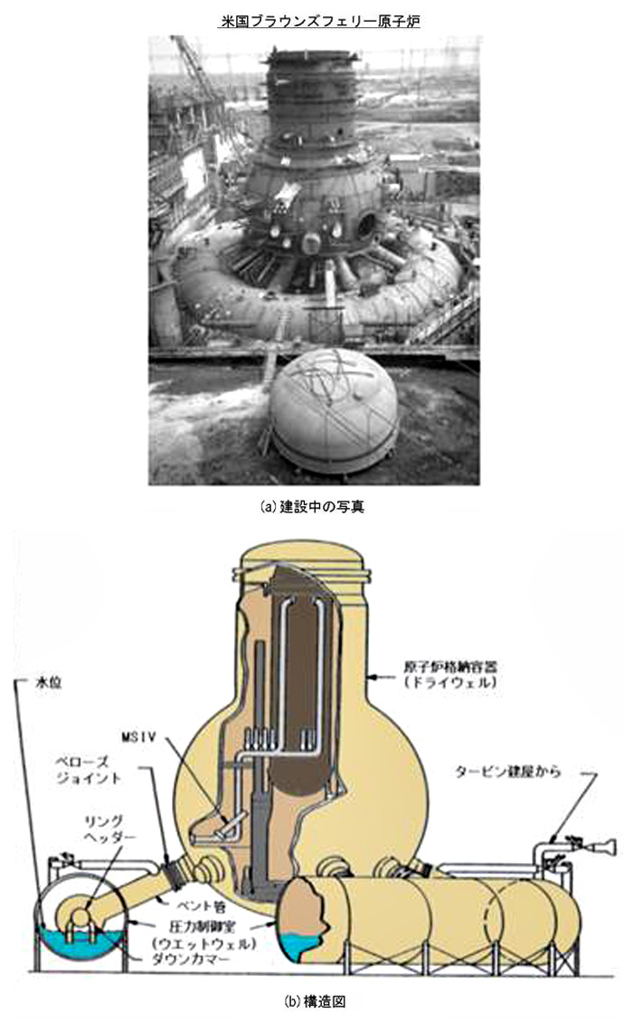 原子炉格納容器 (ドライウェル) は日本ではフラスコ型と言われるが、米国ではライトバルブ(電球)型と言われる。