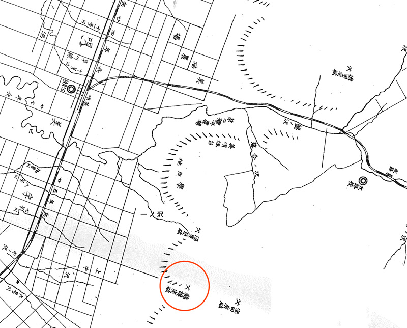 鉱区は,現在7丁目先の水源地の沢 (7号の沢) 一帯で,約50万坪余. 現在でも上の貯水池の両岸附近にその坑口が見られる。