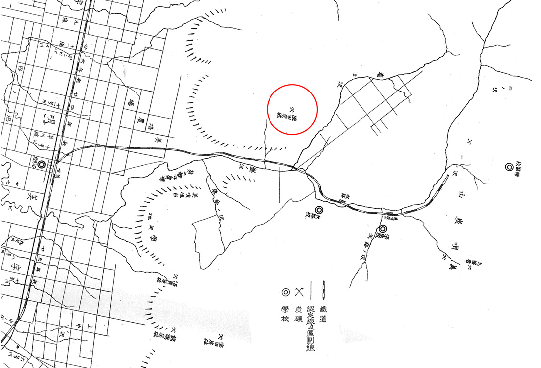 彼は美唄の山々の地下にある石炭に注目し,落合の沢,盤の沢. 我路の沢上流一帯にわたり踏査,露頭から露頭を求めて調査をした。