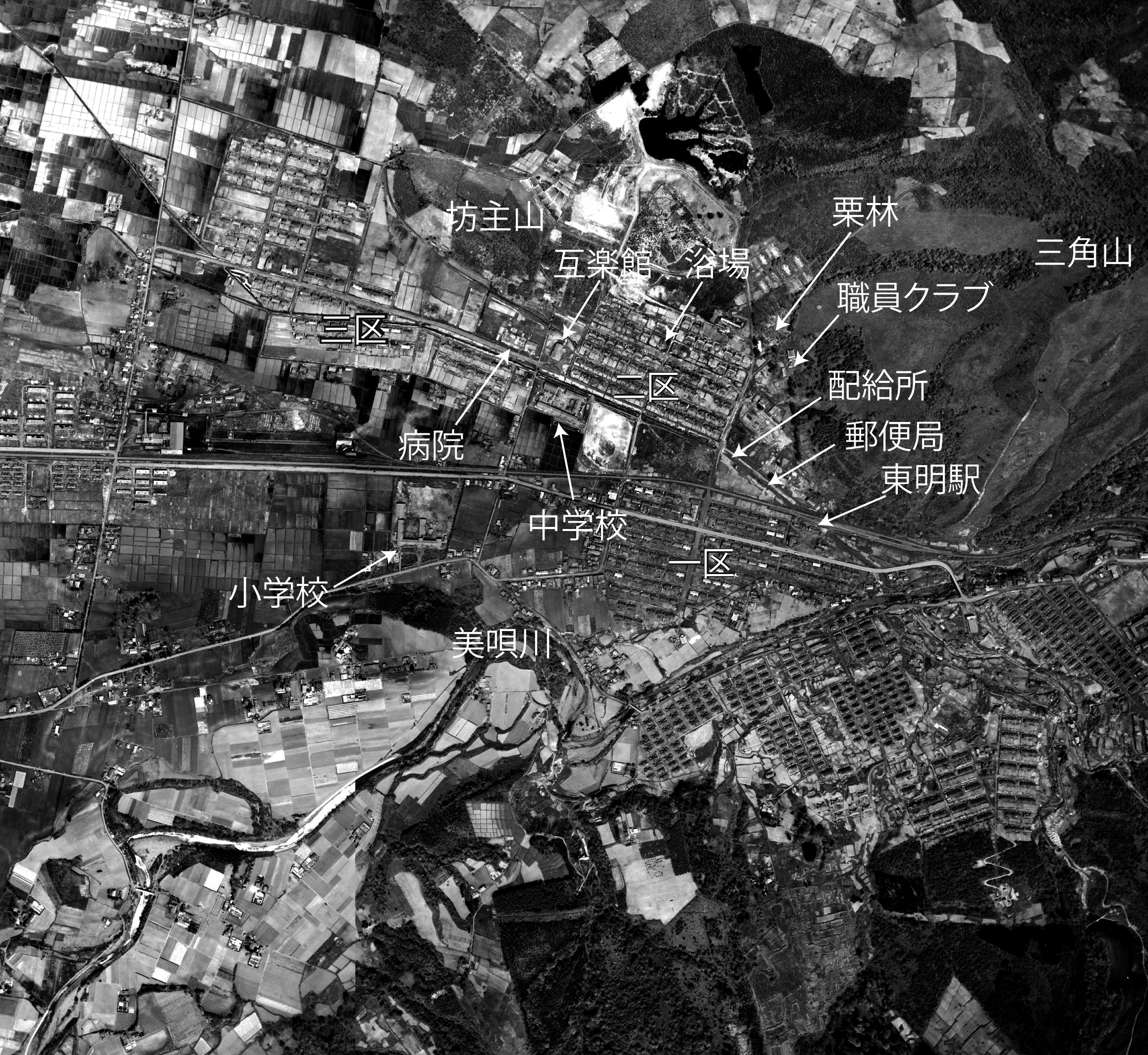昭和20年三井美唄炭鉱の炭住計画により, 東明地区に約1,000戸の住宅が3か年計画で建てられ [た。]