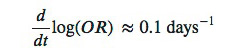 (in the graphs it seems like log odds changes 4 units in a bit more than 1 month and probably they use ≈ 7 days) you get s = 0.7