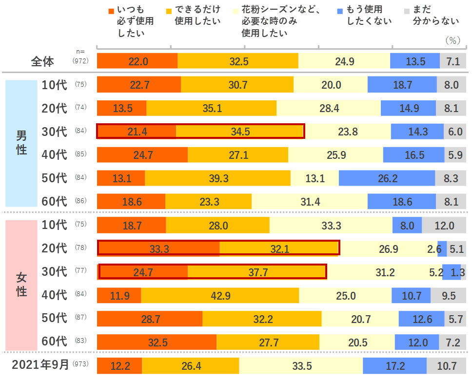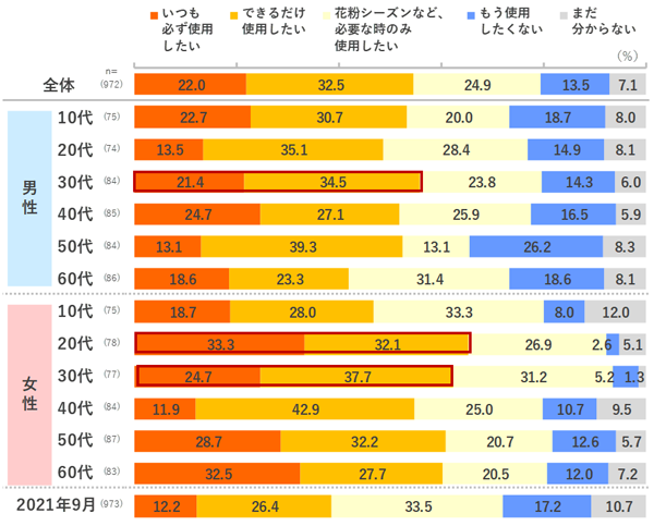 つぎは,日本インフォメーション(株)「マスク生活が長期化した今を読み解く──マスク着用の意識・行動調査」(2022-02-17) からの引用: