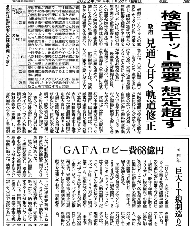 Up | 定点観測「読売新聞のオミクロン株報道」: 2022年1月 | 作成: 2022-01-05 更新: 2022-01-31 |