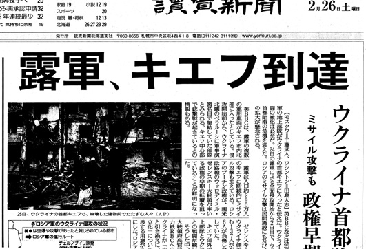 20〜27日は,「ロシア軍ウクライナ侵攻」も重なって,1, 2面の大見出し記事無し