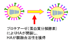呼吸器と腸管にある「プロテアーゼ」によって初めて活性化し感染する力を獲得します。