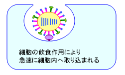 ウイルスは食胞の中に取り込まれます。
