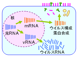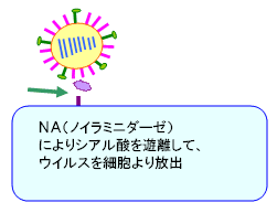 インフルエンザ治療薬として使用されている「タミフル」は、このNAの働きを阻害して新しい