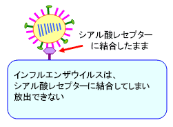 なシアル酸レセプターですが、このままでは新しいウイルスは細胞から離れることができません。