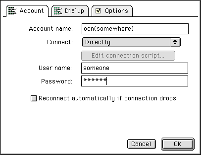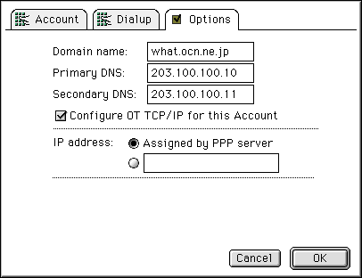 - これの設定に使うソフトウェアは,Macintosh では「PPP コントロールパネル」です。