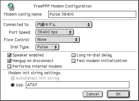 - 自分の使っているモデムの設定です。