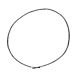 このとき形は,"しかじかであること" として,コトである。モノ(特に,図)をコトとして見るその見方である。 "図形" は,このような意味での《モノのコト化》を主題にする。他方"幾何" は,この場合のコトから出発する。それは,コトの論理系を展開する。 2. 形の恣意性 円周角が中心角の1/2であることは,"円" の定義からの推論で出てくる。円周角が中心角の1/2であることは,<論理>によって保証されている。これに対し,"このモノの形は円である" という認識を保証するものはない。 実際,図1に対し,わたしは("歪んでいる" という理由をことさらに持ち出して)これは"円でない" と言い得る。また逆に,円として ![]()