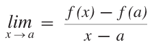 • 点Pでのxの変化Δに対するf(x)の変化の割合は,一般にΔの取り方によって違ってきます。そこで,関数 f のP(a, f(a)) での変化率を,つぎのように (平均変化の極限として) 定義します: