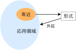 そして,ひとたび形式が定立されると,形式の外延が,これの出処となった卑近を超える広大な領域として考えられてくる: