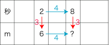 (2) | 「測定値の対応は一定数倍」を適用すれば,?=8×3。 |