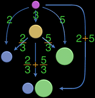 Then we apply to them the formula of the sum of rational numbers with common denominators.