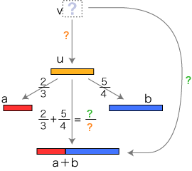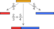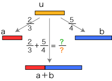 さて,数の和は 倍の和として定められます。 そこで分数の場合,つぎのようになります (倍は,長方形のヨコの長さに関する倍):