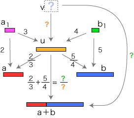 3. 分数 2/3,5/4 の意味により,つぎのような量 a1, b1 がとれる: