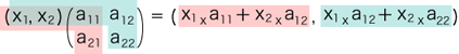 ![]() そこで,これらを括って,(x1, x2) の対応先をつぎのように表すことにする: ![]() この式の読み方は,