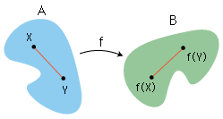 Aの任意の2点 X, Y に対し,d(X, Y) = d(f(X), f(Y))