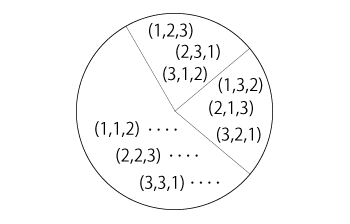 集合 \(\{ 1, 2, 3 \}\) を \(N\) , とおく。