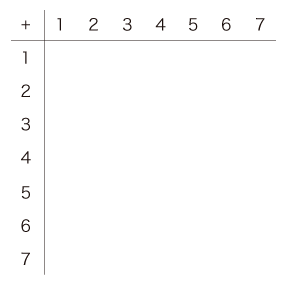 先ず,和の計算 (「筆算」) ができるために,「足し算九九表」を作成する。