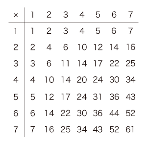 こうして,つぎの「かけ算九九表」が得られる: