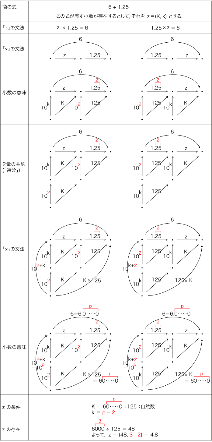 - 6 ÷ 1.25 = 4.8 (48 の下位1(=被除数に加えた0の個数) 桁を小数点以下の桁とする)