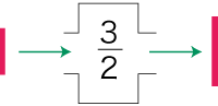 「3/2倍」を「入力した量に対し,これの3/2倍の量を出力するマシン」と捉え直したのが,つぎの絵です。