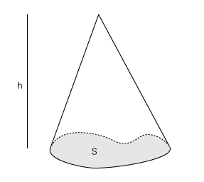 いま,底面積S,高さhの錐を考える: