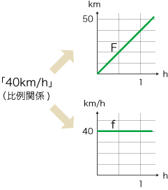 (「時間の 2, 3, ‥‥ 倍に,移動距離の 2, 3, ‥‥ 倍が対応」)