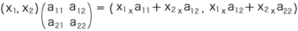 ![]() そこで,これらを括って,(x1, x2) の対応先をつぎのように表すことにする: ![]() この式の読み方は,