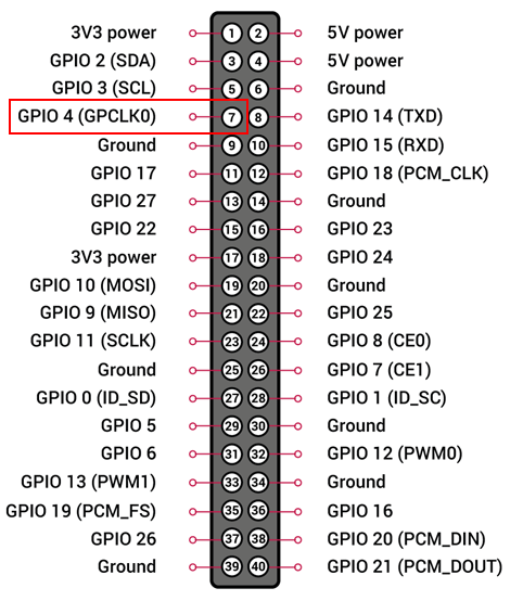 I2C 用ピン:GPIO4 (7番ピン)