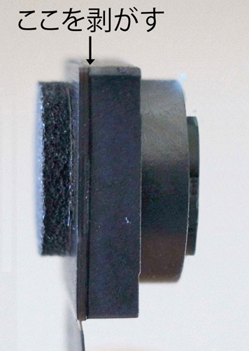 切れ目にカッターナイフの刃先を入れて,レンズ部を剥がし取る。