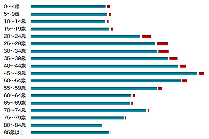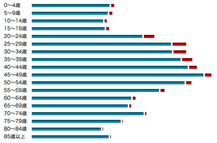 45〜49歳 | 26,756 | 24,735 | 2,021 (7.6 %) |