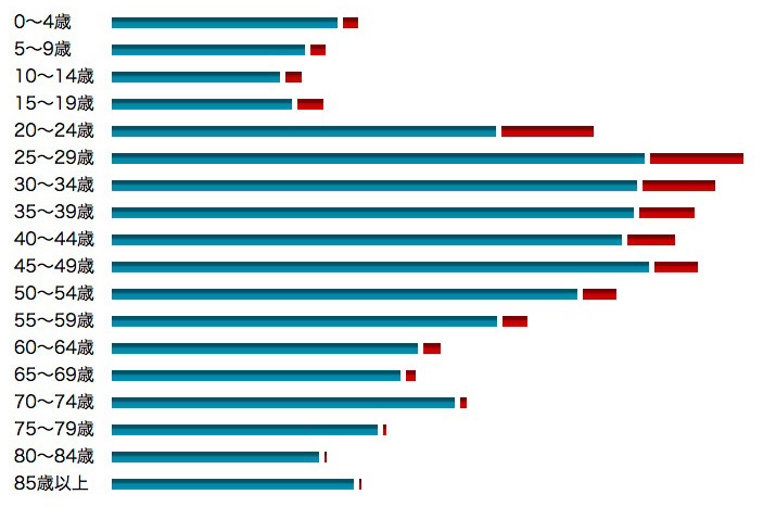 25〜29歳 | 28,855 | 24,548 | 4,307 (14.9 %) |