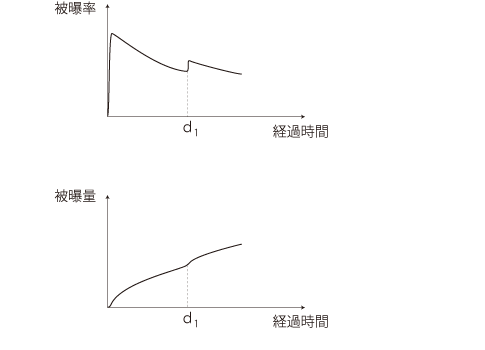 A. <測定開始時からの経過時間>に対する<被曝率>の変化