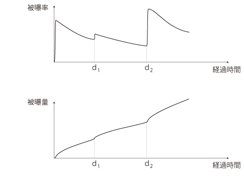 ──実際,被曝率の推移は,小さな「被曝率一定」に区分した形で捉えることになる。