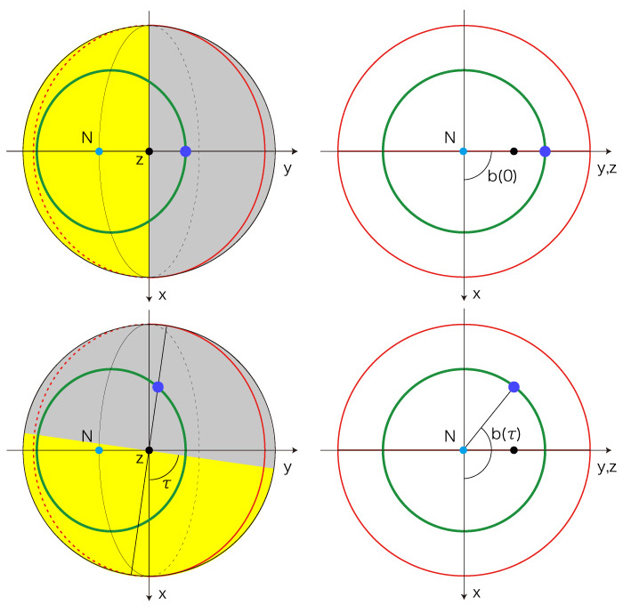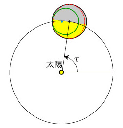 この経度を,b(τ) と表すことにする。 ![]() 例:正午(夜)の場合 ![]()