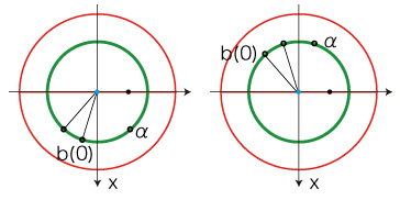 (1.2.2) τ> \(\tau_0 \) ならば,b(τ) = α ![]() (2) π < b(0) < 2π のとき