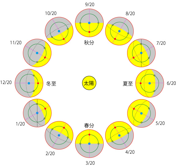 日中の時間が短くなるのは夏至から冬至にかけてであるが,変化の大きさは,秋分の前後が最も大きい: